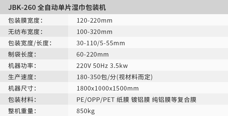 JKB-260餐飲濕巾包裝機