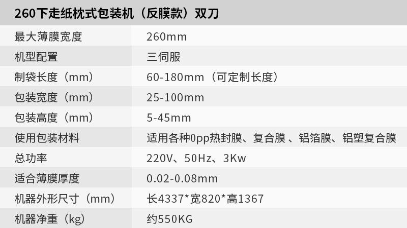 KD-260下走紙枕式包裝機(jī)(反膜款)雙刀
